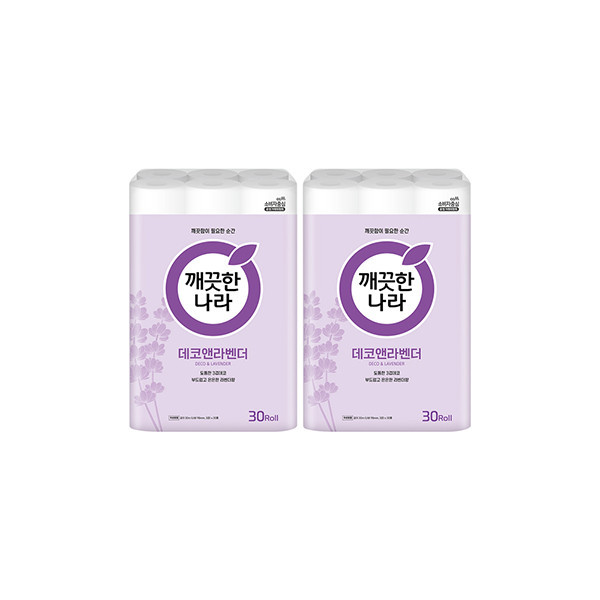 [반려인혜택]깨끗한나라 롤티슈 데코앤라벤더 30m 30롤 2개