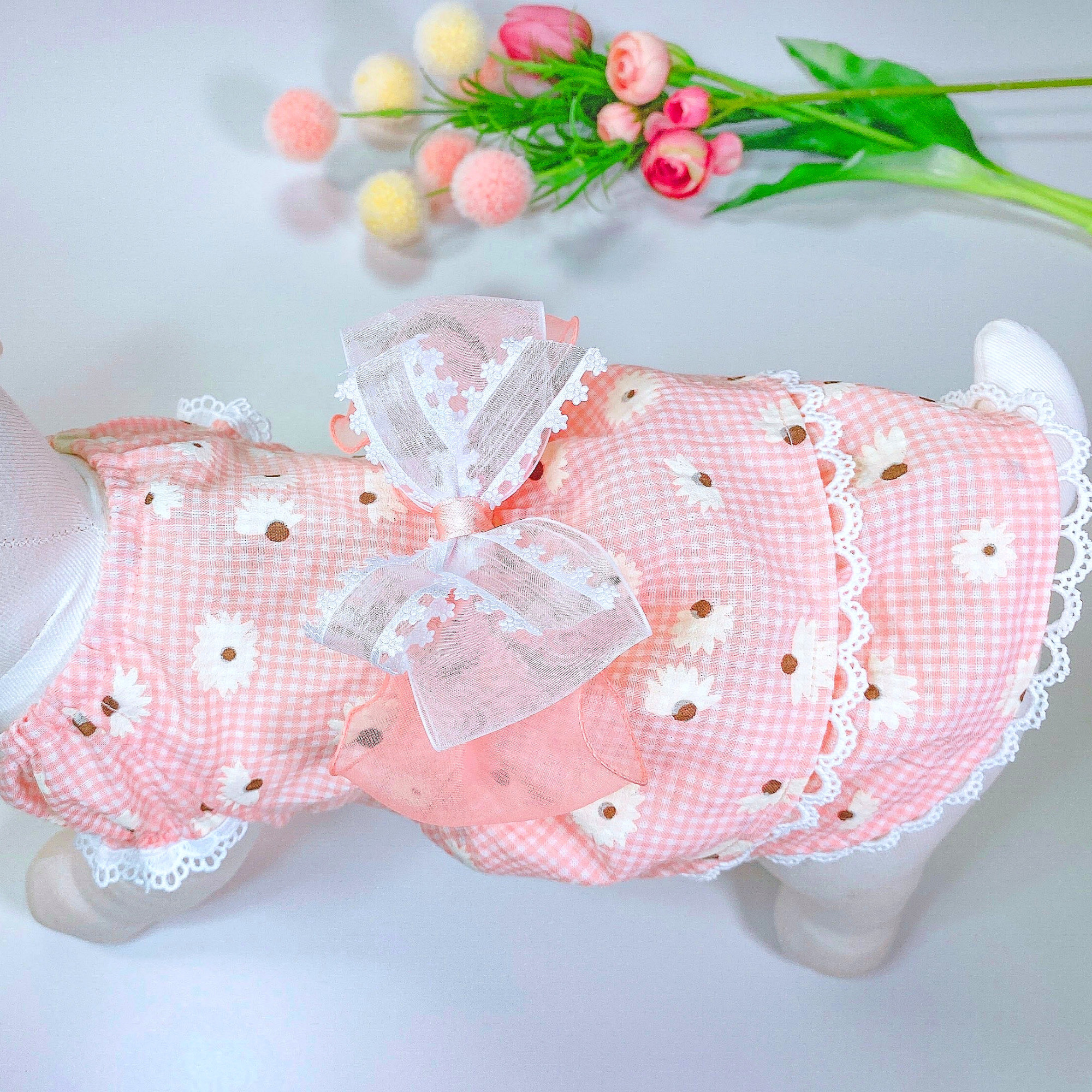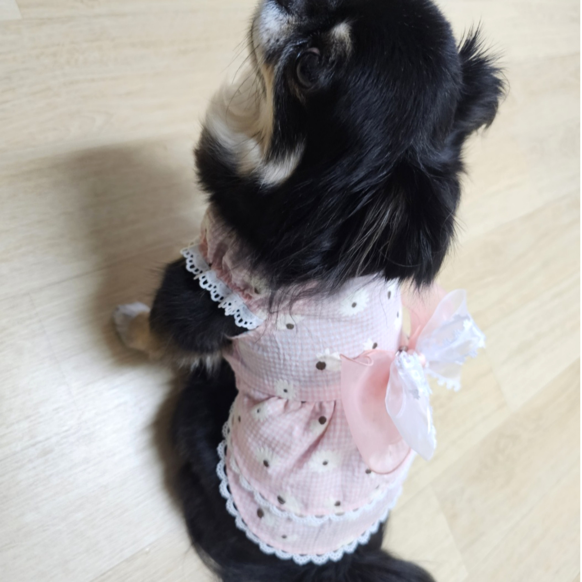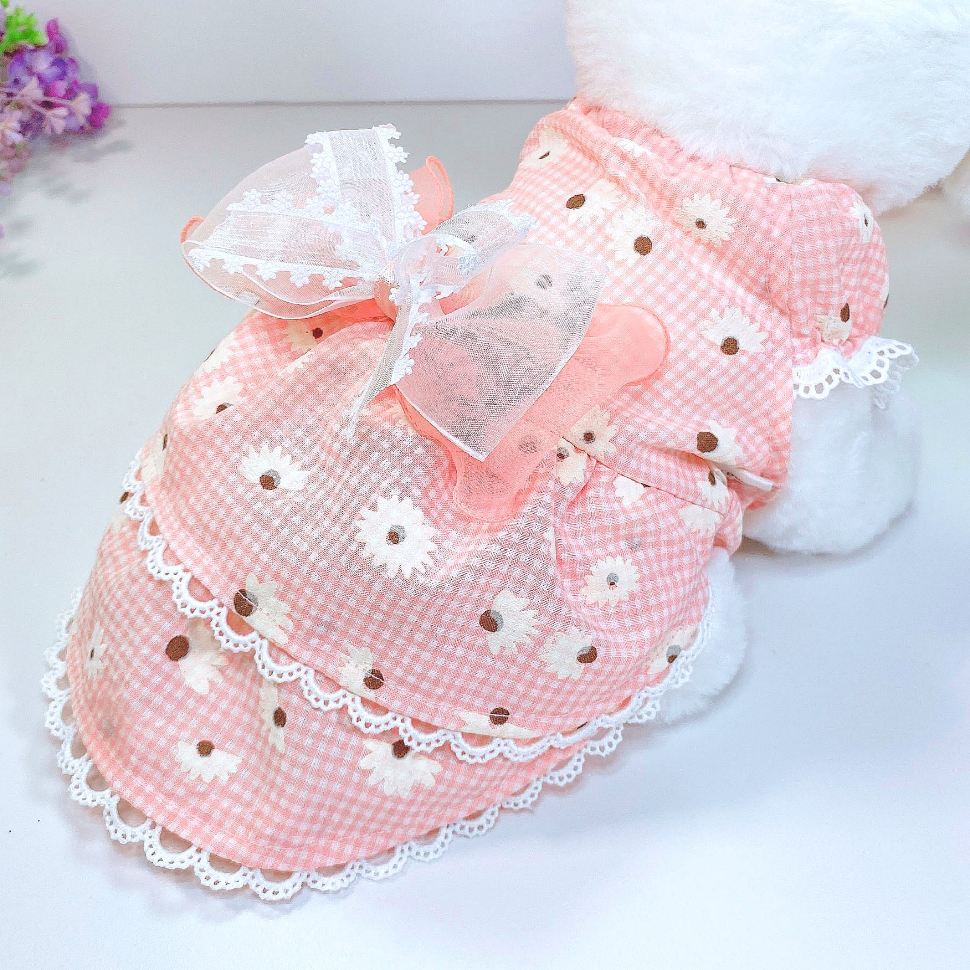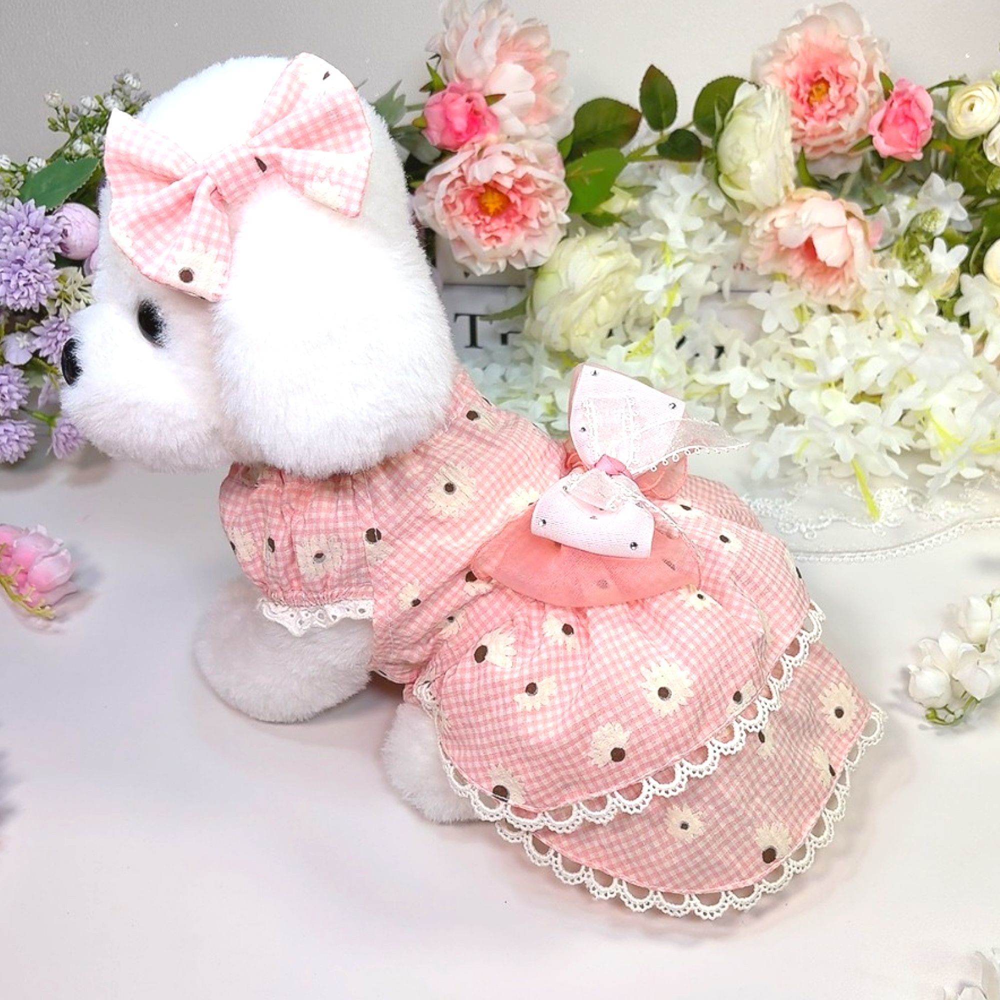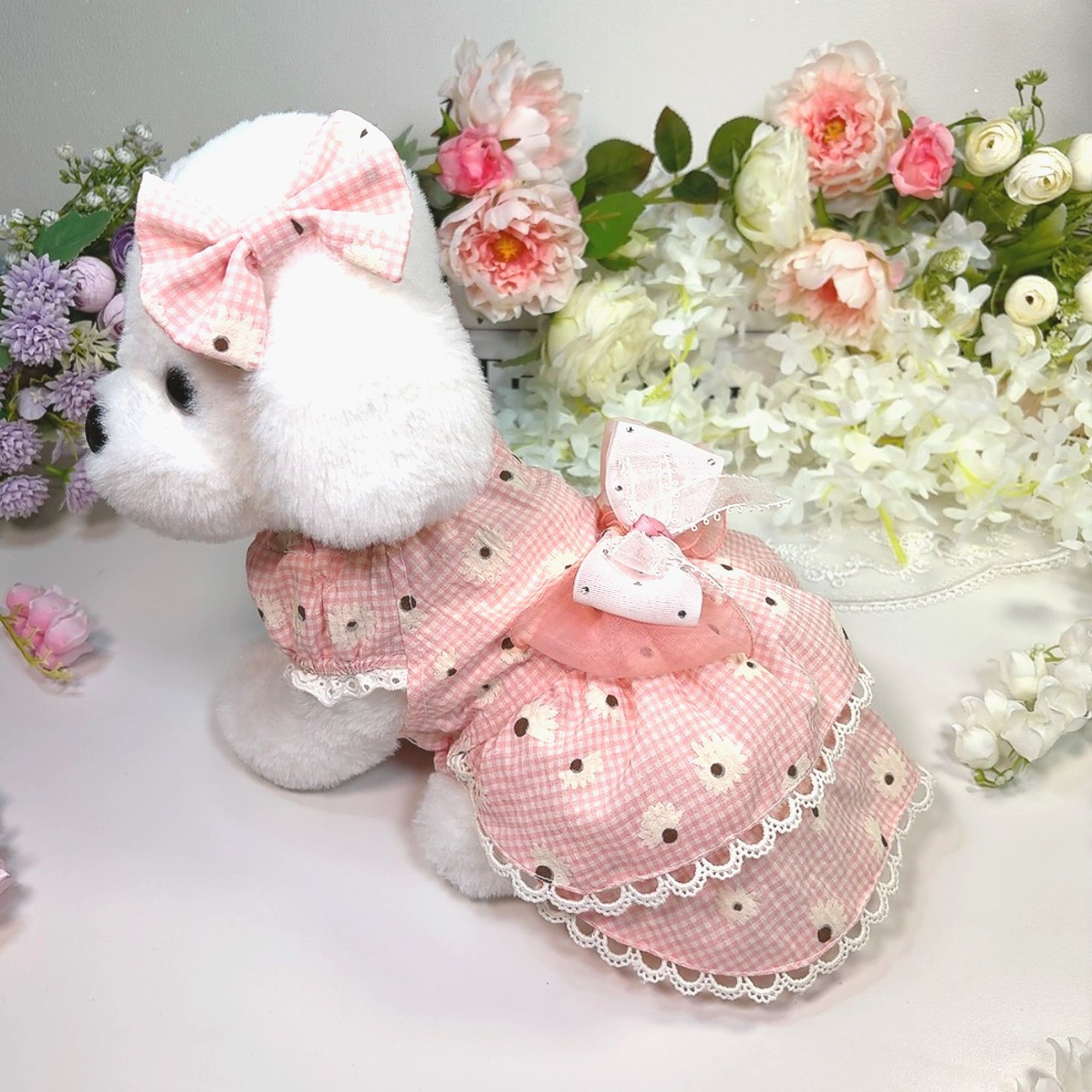 소매부분의 레이스는 강아지모델 사진에 있는